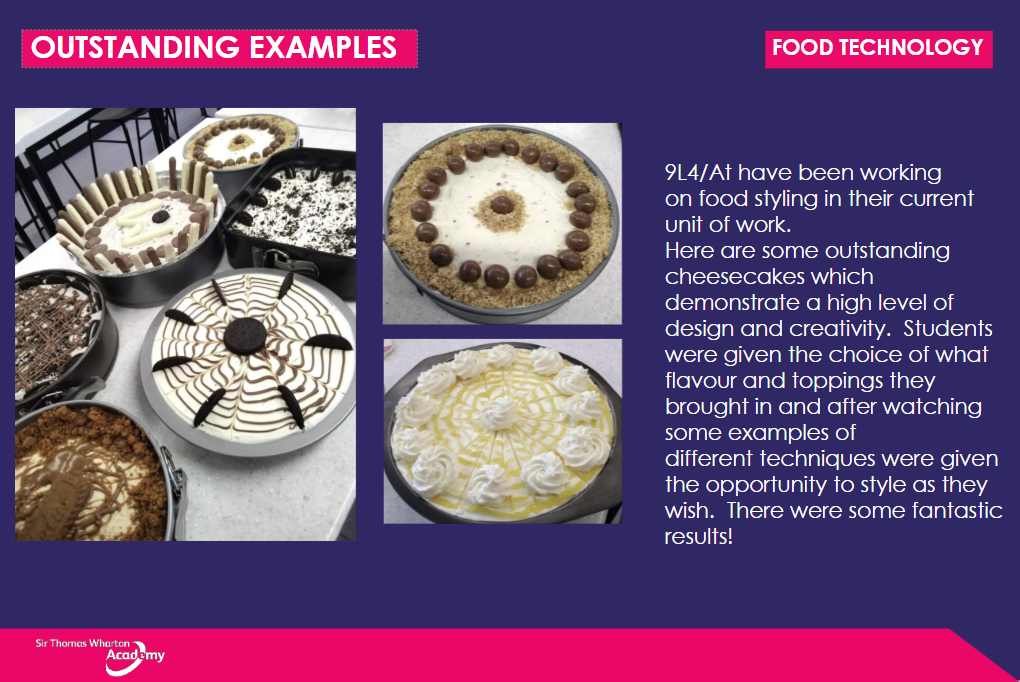 These skills will help our learners move onto their next stage of learning equipped to be the next leaders in the design and technology industry as well as developing a career in food, diet or catering.