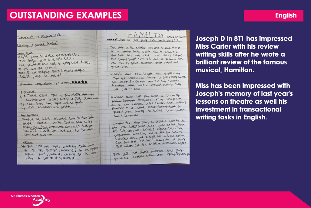 The teaching staff in the English department, led by Ms  Shaw, are available to answer any questions you or your child may have.