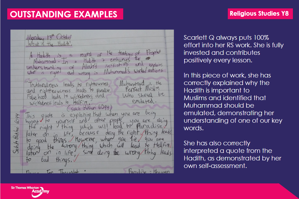 The purpose of Religious Studies is to develop students' understanding of religions and world views and explore their commonality and diversity. It aims to nurture students' awareness of beliefs and cultures, as well as sensitivities to the questions and challenges these can present. Religious Studies can play a part in helping students discover their own place and identity in the world around them and encourages tolerance, respect, empathy and kindness in our school and local communities.