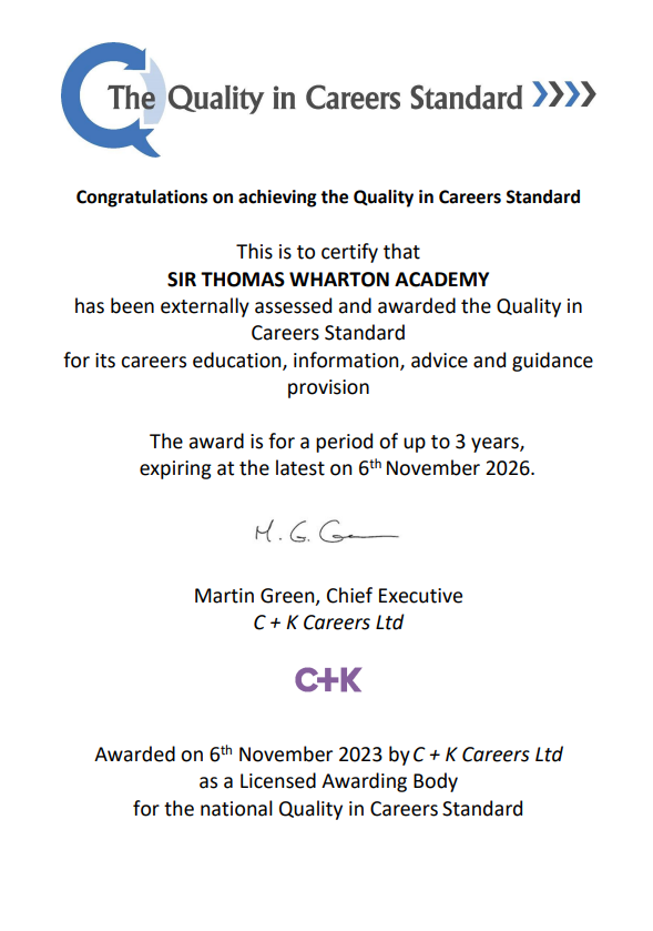 Sir Thomas Wharton Academy’s Careers Education and Guidance policy is delivered with the following intent: